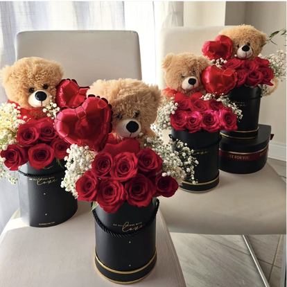 Make this Valentine’s Day unforgettable with our Valentine’s Teddy Rose Box Arrangement, a perfect blend of romance and charm. This luxury design features premium fresh red roses carefully arranged in an elegant black keepsake box, accented with delicate baby’s breath, a soft plush teddy bear, and a heart-shaped foil balloon for the ultimate romantic touch.